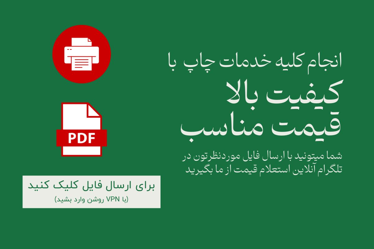 بله ما کلیه خدمات چاپ و صحافی رو با بالا ترین کیفیت و بهترین قیمت انجام میدیم فقط کافیه فایلتون رو جهت استعلام قیمت و ثبت سفارش از طریق روش زیر برامون ارسال کنید.